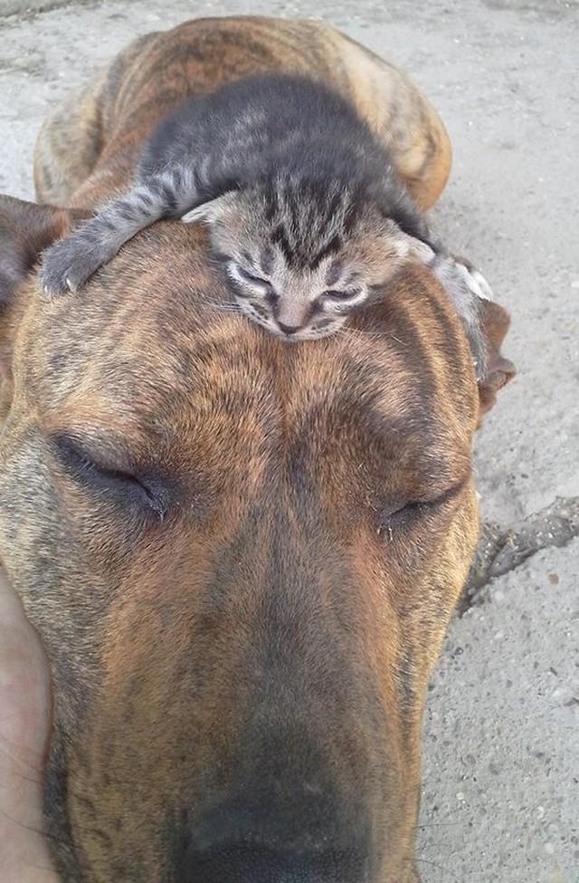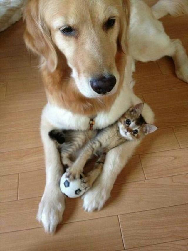 Когда собака приглашает к игре, кот расценивает это как угрозу. Но иногда таки можно встретить настоящую крепкую дружбу между двумя абсолютно разными полюсами.