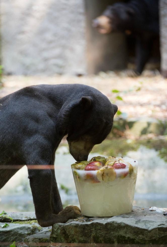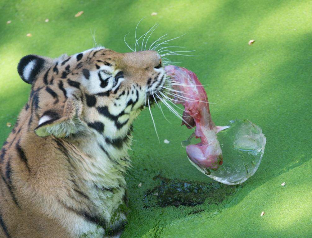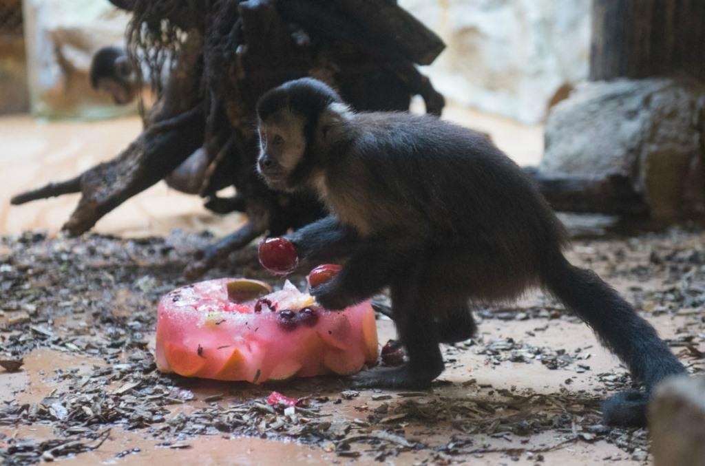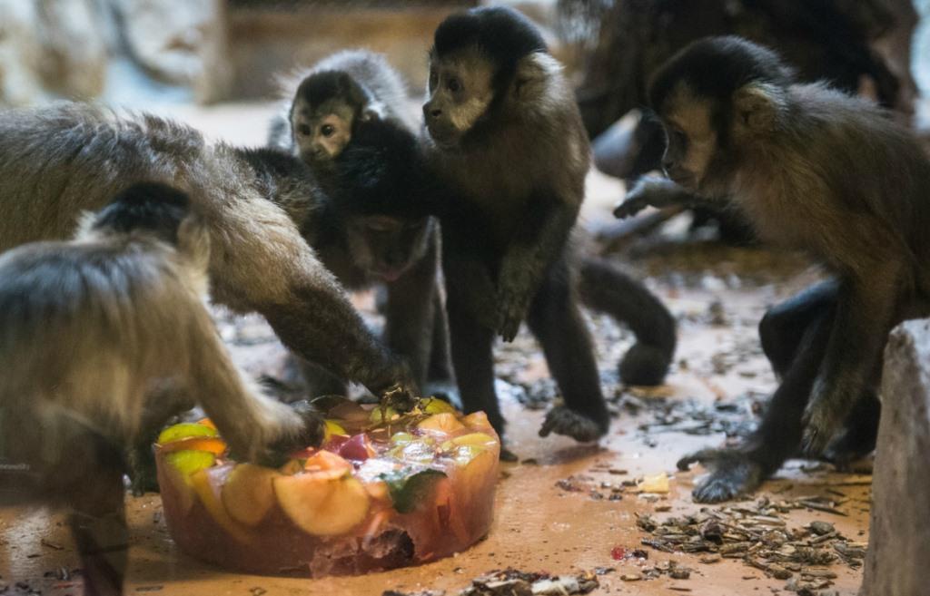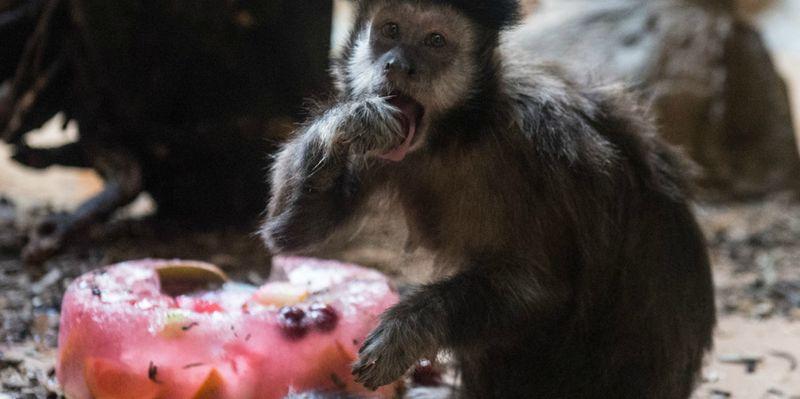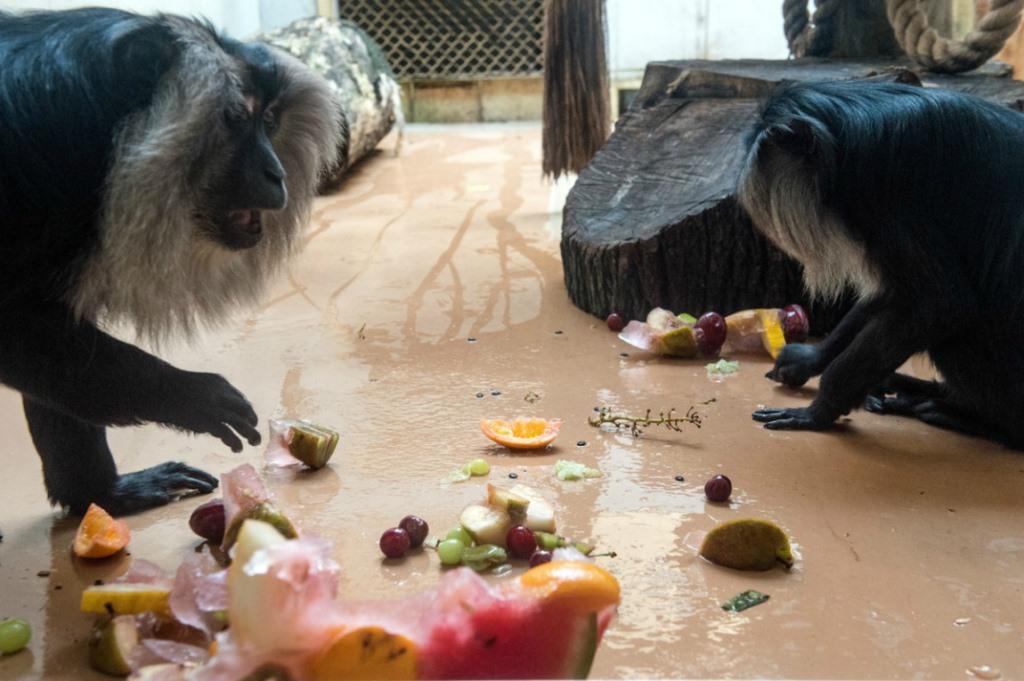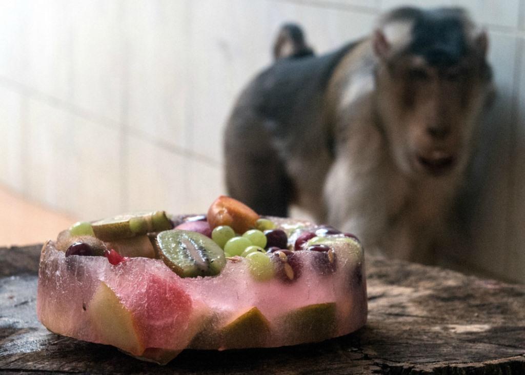 Таким образом, в польском городе Лодзь животные зоопарка получили возможность отведать замороженную и в то же время свежую еду. К примеру, макакам и обезьянам подали настоящее мороженое со свежими фруктами, пингвины и медведи ели рыбу со снегом, а тигры и другие хищники получили мясо в ледяной оболочке.
