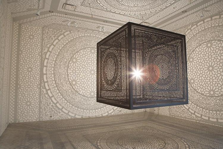 Деревянный куб украшен оригинальной резьбой, выполненной при помощи лазера. Внутри фигуры установлен источник света, таким образом, художнице удалось добиться равномерного освещения. Геометрический орнамент на стенах напоминает роскошное убранство исламских мечетей.