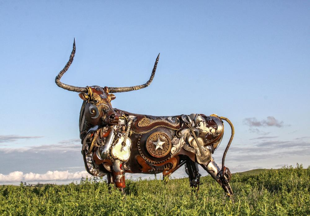 Экологически безопасные и запоминающиеся, эти сварные фигуры идеально отображают иконографию американского Запада — бизон, лошадь с плугом, техасский бык.