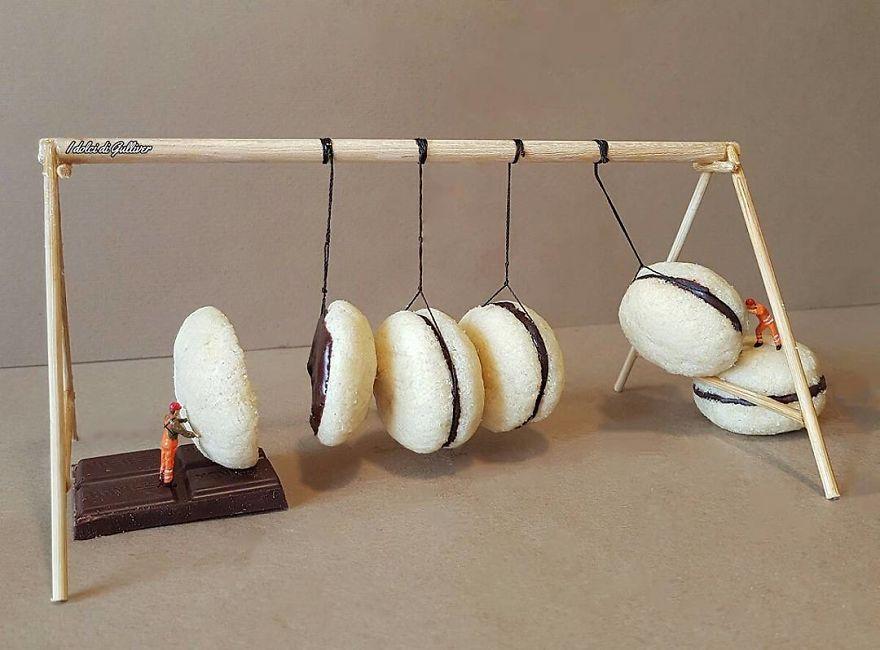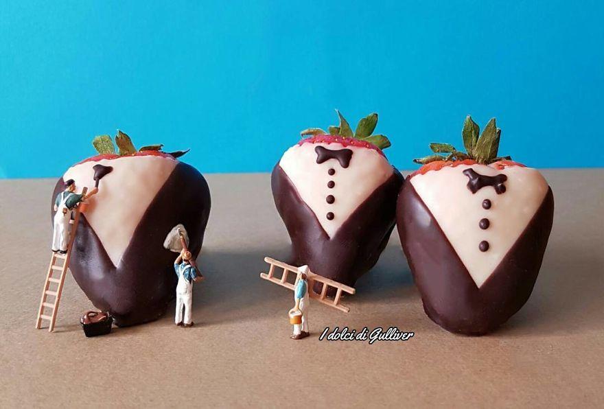 Рядом с каждым десертом Маттео селит миниатюрного человечка.