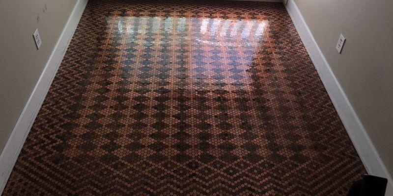 Но только для ремонта женщины выбрала отнюдь не привычные стройматериалы. В банкомате она сняла 150 долларов мелкими монетами. Когда женщина пришла домой, то отсортировала светлые монеты от потемневших, и принялась выкладывать мозаику на полу.