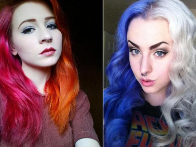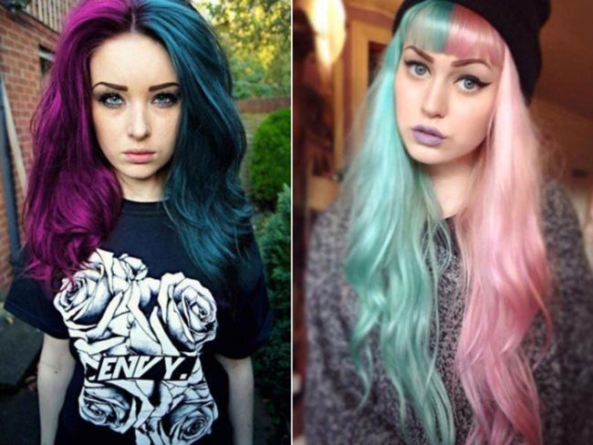 В большинстве случаев модницы разделяют волосы ровно на две части по пробору и красят в разные цвета. Или же делают прическу типа каскада и красят разные «этажи» прически в разные оттенки.