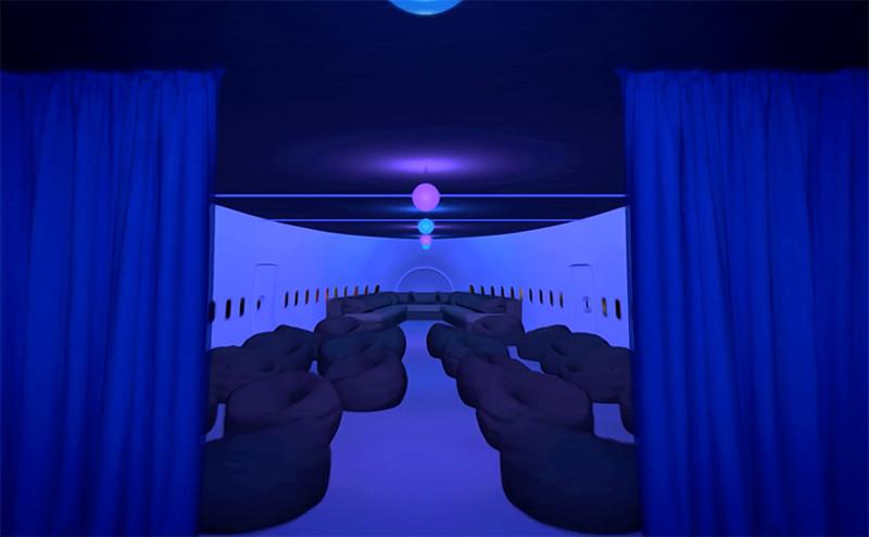 Чтобы войти в лайнер, всем желающим предстоит пройти через «незащищенный контрольно-пропускной пункт» и оставить свой «эмоциональный багаж», прежде чем они направятся в символическое «путешествие по жизни».
