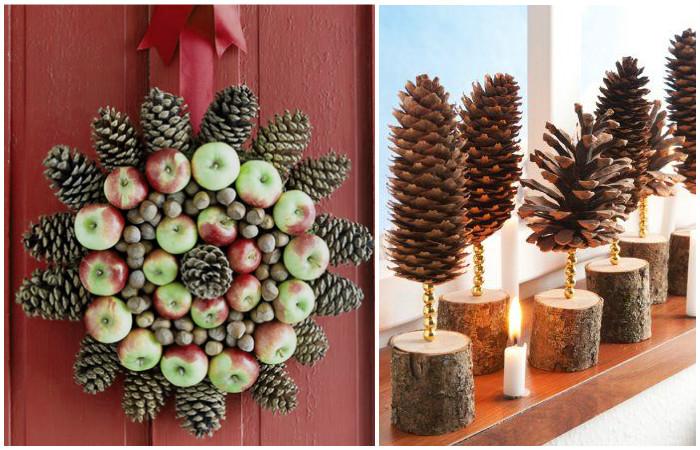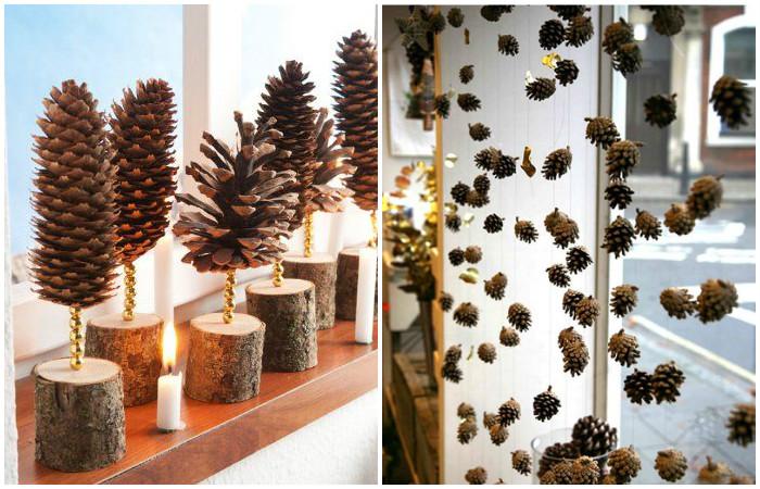 Сосновые шишки, украшающие окна и подоконники, помогут создать по-домашнему уютную атмосферу. Такой новогодний декор отлично сохранится и до следующих праздников