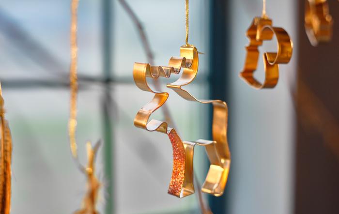 Металлические формочки для изготовления печенья могут стать необычным украшением для окон. Просто подвесьте их на ленточках. При желании можно окрасить их в яркий цвет.