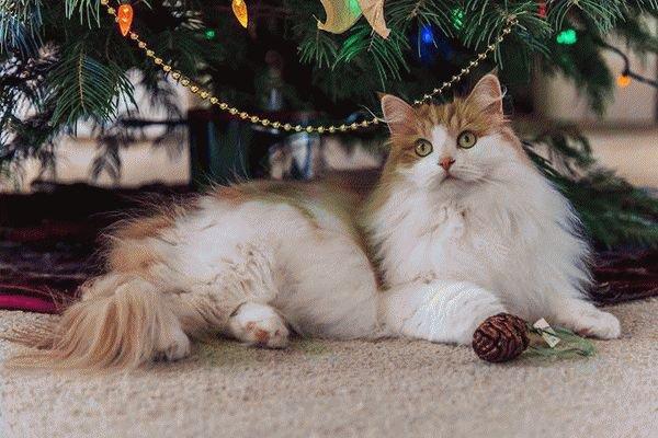 Но не только люди любят праздники. Коты недалеко ушли от своих хозяев. Многие из них просто налюбоваться не могут светом гирлянд, а также украшенными елями, множеством подарков в шуршащей бумаге и не только.