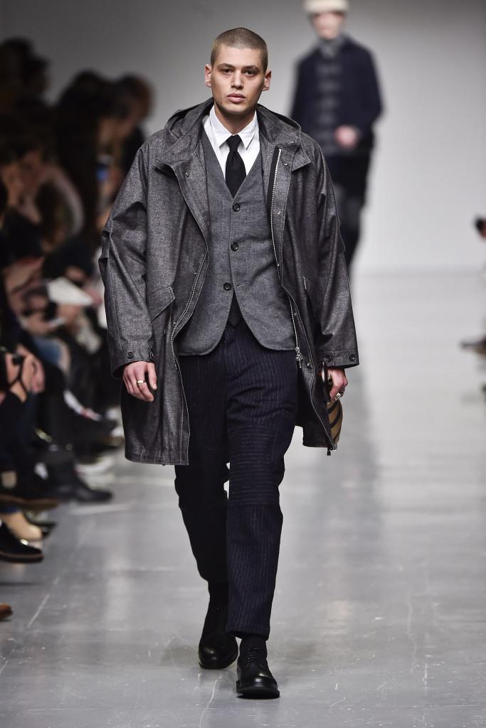 Для того чтобы представить нестандартные и интересные модели таких привычных для всех нарядов, дизайнер использовал только богатые натуральные ткани. Как пример, серая шерсть для свободных пальто укороченные варианты брюк и бомберов, пиджаки коричневого и зеленого оттенков.