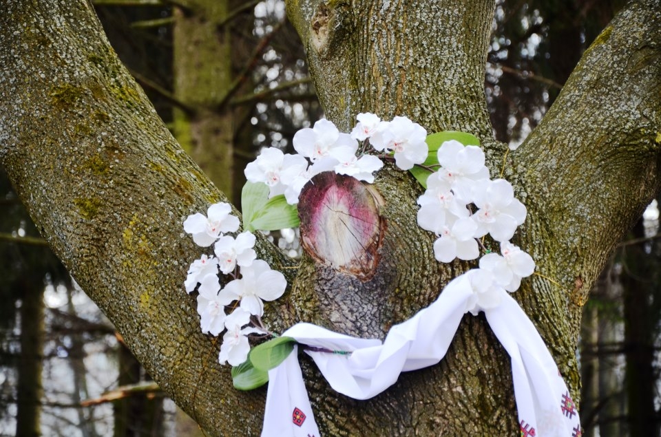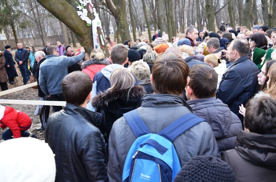 "Такого дурдома еще не видела. Прямо столпотворение возле старой ободранной липы. Срезанную ветвь с красным пятном украсили венком и рушником. Люди молятся, плачут, целуют дерево, фотографируются. Священники возле дерева дежурят круглосуточно", - пишет в Facebook местная Юлия Дячук.