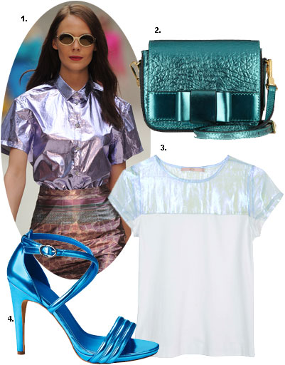 1) Burberry Prorsum, весна-лето 2013; 2) сумка Burberry Prorsum; 3) топ BGN; 4) туфли H&M.