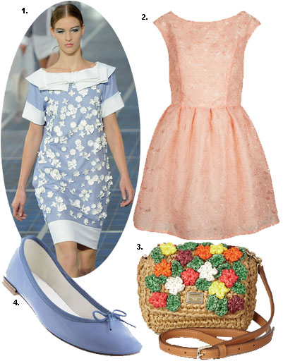 1) Chanel, весна-лето 2013; 2) платье Topshop; 3) плетеная сумка Dolce & Gabbana; 4) балетки Repetto.