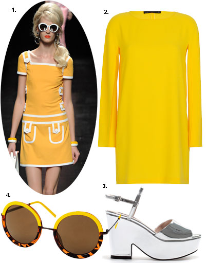 1) Moschino, весна-лето 2013; 2) платье Zara; 3) туфли Zara; 4) очки H&M.