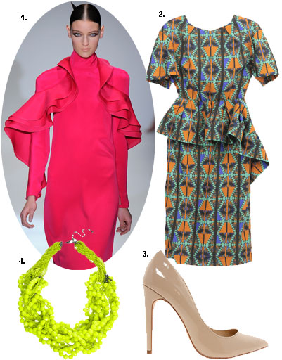 1) Gucci, весна-лето 2013; 2) платье LUBLU Kira Plastinina; 3) туфли Aldo; 4) колье Pieces