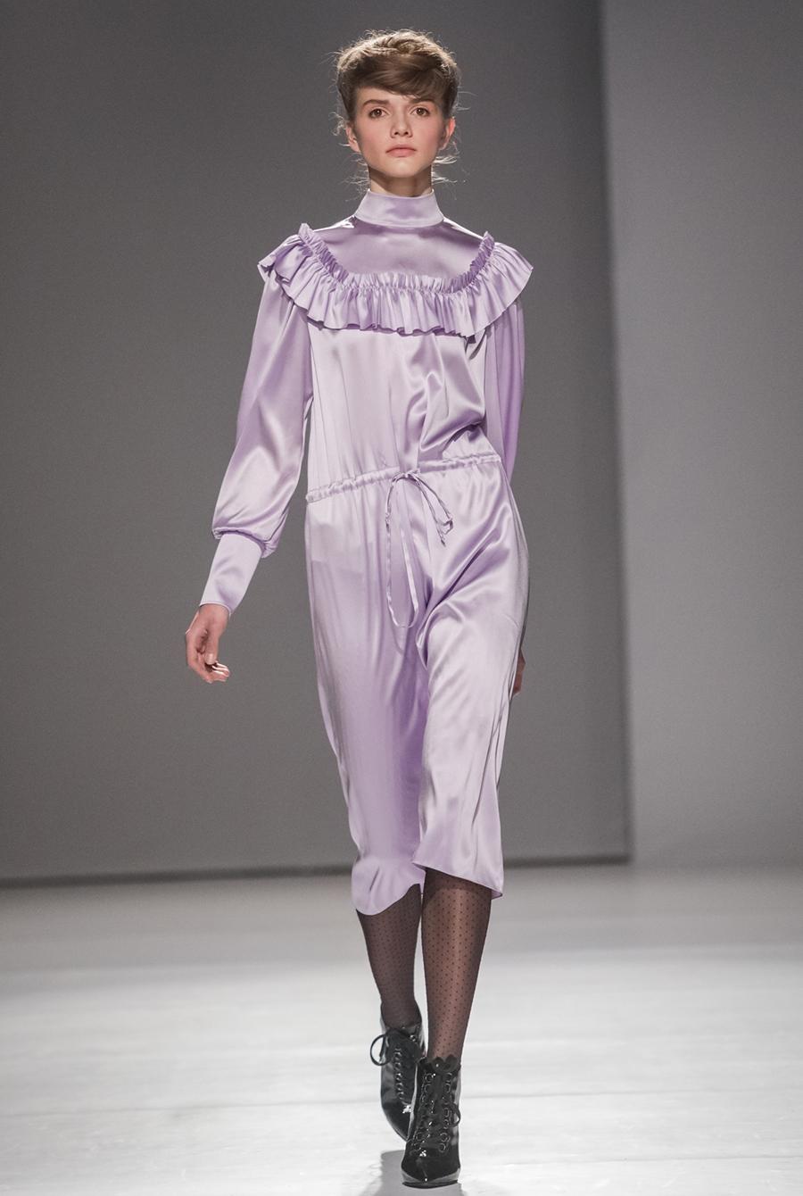 Дизайнер сделал ставку на длине миди, а среди тканей выбрала шелк, хлопок и тонкую шерсть.
