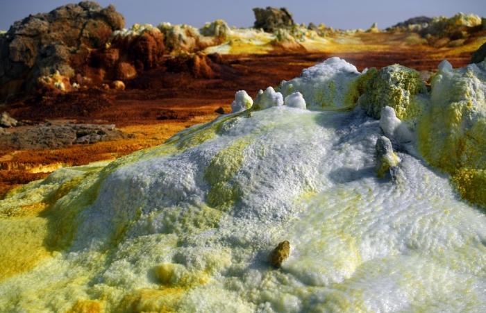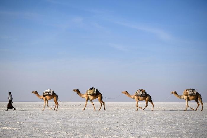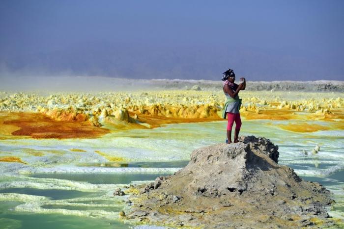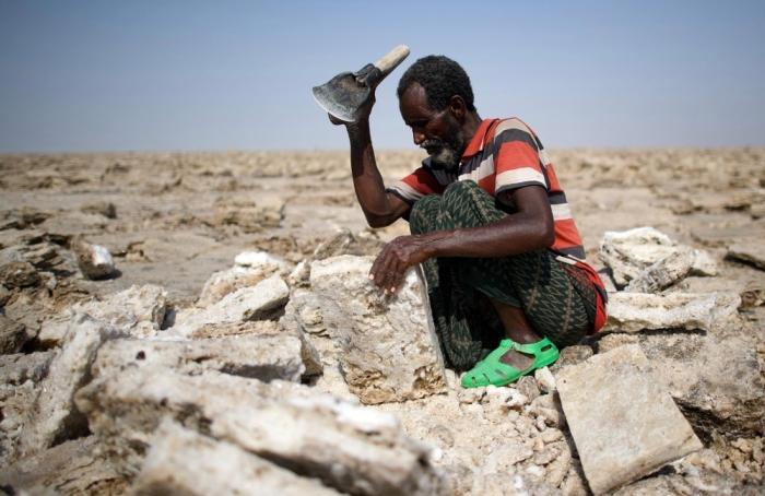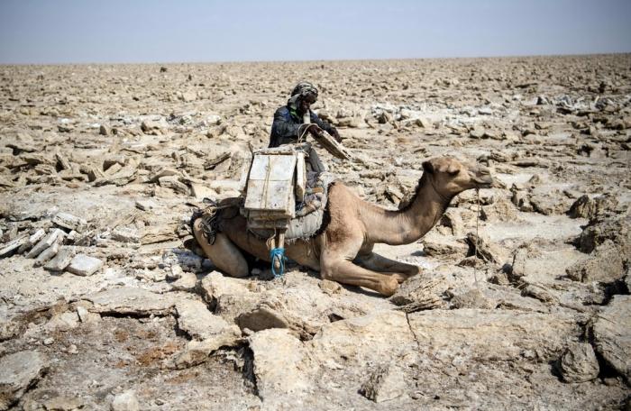 Несмотря на эти тяжелые условия, эфиопы продолжают вековые традиции добычи соли из земли вручную при температуре в среднем 34.5 градусов по Цельсию, которая поднимается до более чем 50 градусов.