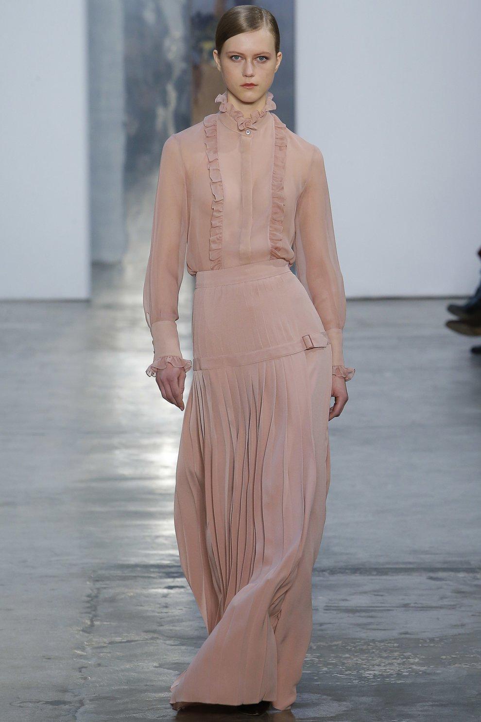 Отдельное удовольствие – вечерние наряды Carolina Herrera: воздушные, легкие, невесомые. Они вторят движениям моделей, создавая на подиуме настоящую игру фактур и воздуха. «Этой коллекцией я хотела выразить сущность модного дома Carolina Herrera», – говорит дизайнер.