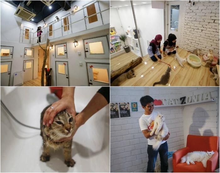 Владельцы кошек могут забронировать номера для своих питомцев на срок от трех часов до одного года. Самый дорогой номер стоит $37.50 за ночь. В отеле трехразовое питание, игровая площадка с кондиционером, котикам делают массаж и маникюр.