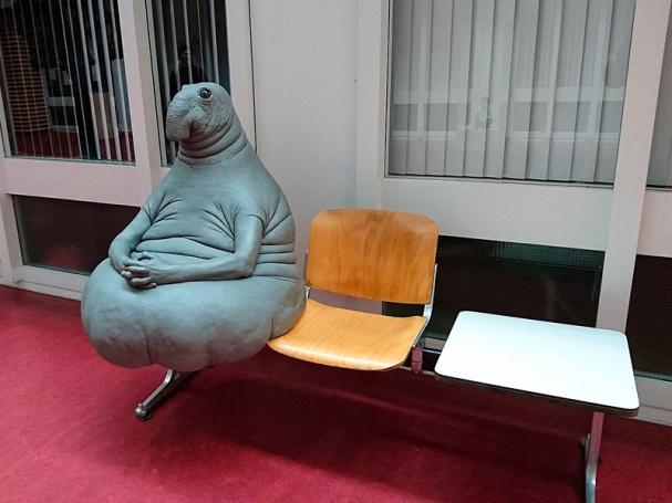 Официальное название этой скульптуры звучит как Homunculus Loxodontus. Художница говорит, что ее вдохновили пациенты, терпеливо сидящие в очереди.