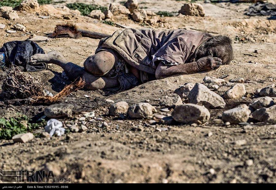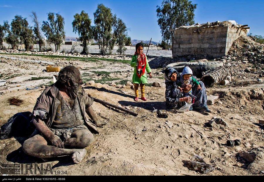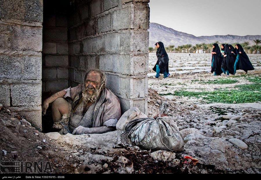 Кожа старика покрылась коростой и грязью, словно чешуей. Из-за нескольких слоев грязи сложно разглядеть его глаза.