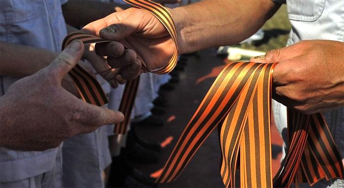 Скоро 9 мая, День победы над фашизмом, и перед этим праздником в стране запретили ношение таких лент. Власть призвала носить ленточки с цветами национального флага. Милиции отдали приказ останавливать людей и машины с «георгиевскими ленточками» и заставлять их снимать.