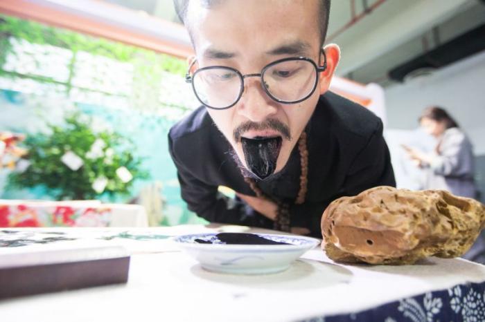 Народное творчество: китаец рисует картины языком (ФОТО)