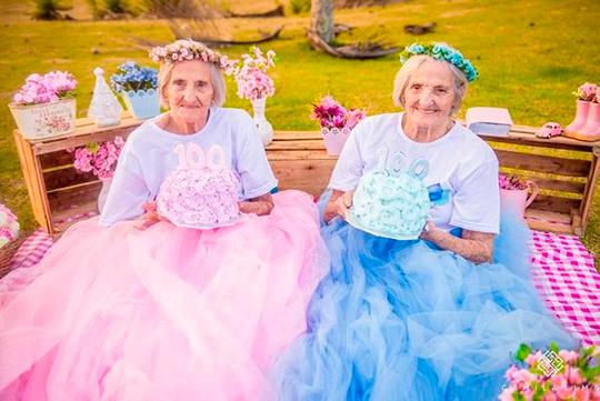 Одним из подарков для их праздника стала необычайно яркая и веселая фотосессия. Фотограф рассказала, что знала о бабушках и решила таким образом пополнить свое портфолио, а заодно и именинниц порадовать.