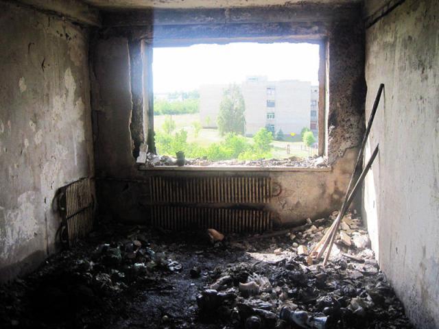 В штабе АТО сообщают, что один из боеприпасов, выпущенный бандитами, угодил в квартиру, которая находится в пятиэтажном доме. К счастью, никто из гражданских не пострадал.