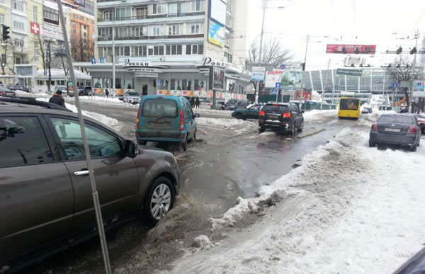Как пишут «Комментарии», снег, который выпал на улицы Киева в огромных количествах, постепенно начал таять под лучами весеннего солнца. На многих улицах города уже образовались глубокие лужи.