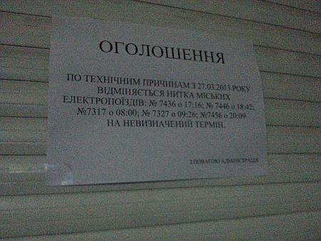 По техническим причинам 27 марта в Киеве отменили ряд городских поездов. Соответствующее объявление обнародовала на своей Facebook-странице Виктория Бондарь.