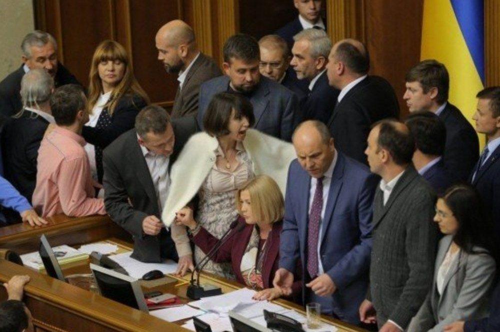 В ходе обсуждения законопроекта депутаты от «Самопомощи» Егор Соболев и Виктория Войцицкая начали выкручивать микрофоны с рабочего места председателя Верховной рады Андрея Парубия, пока его не было. После того, как он попытался вернуться к своему рабочему месту, его попытались не пропустить, в итоге у президиума произошла потасовка.