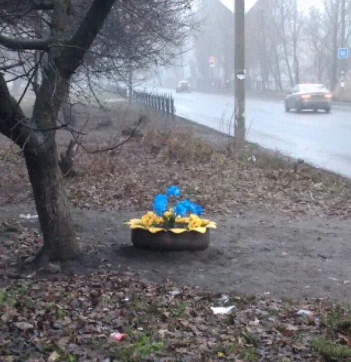 На снимке видно, что неизвестные активисты украсили клумбу в цвета флага Украины. "Украинское ДРГ не дремлет", - подписал фотографию блогер Paul Vezko.