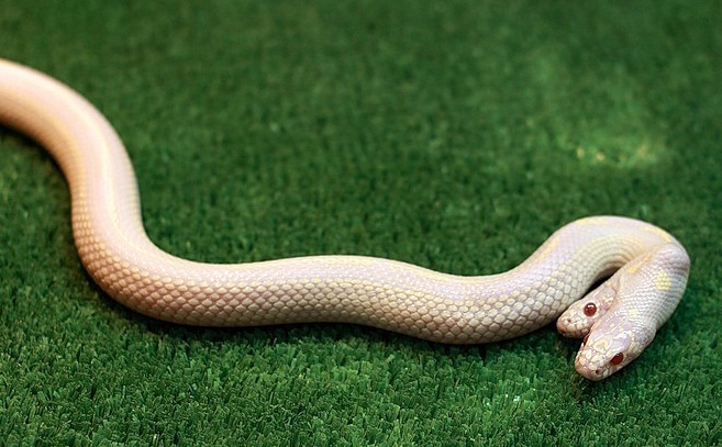 Как заявили представили зоопарка, появление двуглавой змеи - событие, происходящее "один раз на миллион", и это не считая альбинизма.
