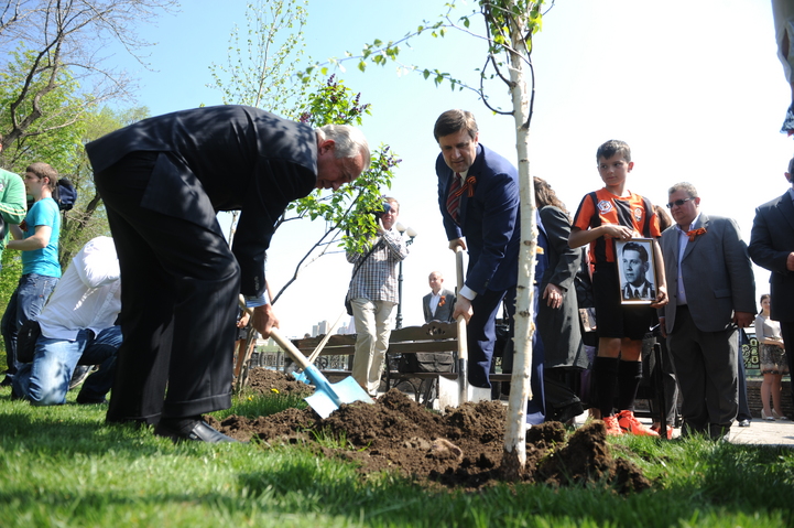 Отдать дань уважения футболистам-фронтовикам и поучаствовать в разбивке Аллеи в парке собрались ветераны войны. Пришли сюда и школьники, и юные воспитанники Академии "Шахтера". Инициатором создания Аллеи стал ветеран Великой Отечественной войны, директор областного издательства "Книга памяти Украины" 92-летний Иван Кулага.