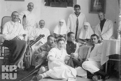 1914 год. Царскосельский госпиталь. Сестры милосердия - великие княжны Ольга и Татьяна с ранеными в Первой мировой войне. Как только началась война, для них и императрицы Александры Федоровны работа в лазаретах и больницах стала привычным делом, а платья сестер милосердий - повседневной одеждой. Фото: из семейного архива Романовых