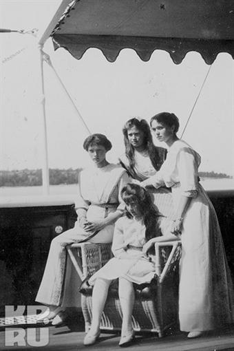 1914 год. Царская семья традиционно отправилась в летнее путешествие по Черному морю на яхте "Штандарт". Но фотографии: великие княжны Татьяна, Мария Ольга, (слева - направо) и Анастасия (в центре). Девочки с детства привыкли к этой яхте. Когда они подросли, родители разреши им самостоятельно купаться. Великие княжны любили дурачиться на палубе, общаться с офицерами и придворными. Фото: из семейного архива Романовых