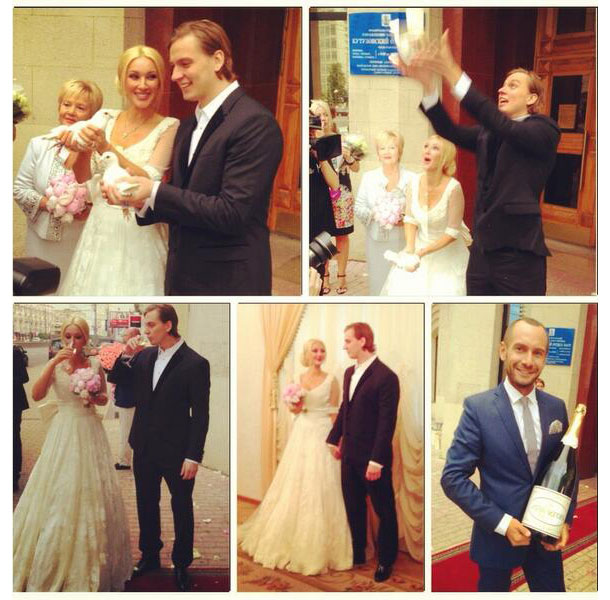 Кудрявцева пошла под венец в роскошном платье цвета шампанского. Балерина и светская львица Анастасия Волочкова и певица Татьяна Терешина, также приглашенные на свадьбу, оперативно передавали новости с мероприятия в Twitter. А вот Сергея Лазарева, с которым у телеведущей долгое время были отношения, на торжество, похоже, не позвали.