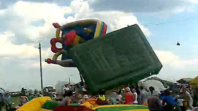 В это же время в воздух поднялся батут, на котором находились дети. Мы не успели вытащить их, и батут перевернулся вместе с ними.