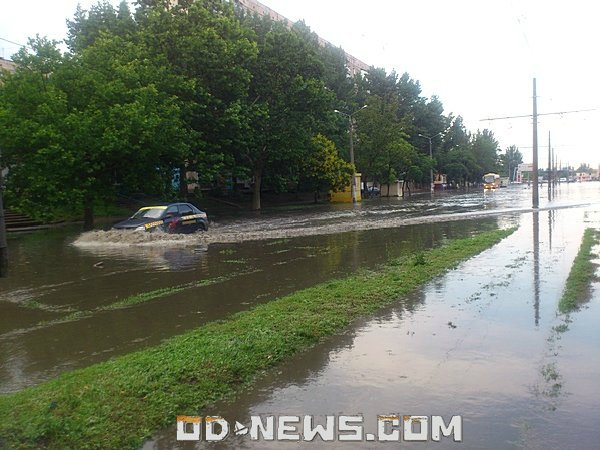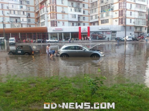 Очередной грозовой дождь днем, 16 июня, превратил ряд одесских улиц в реки.