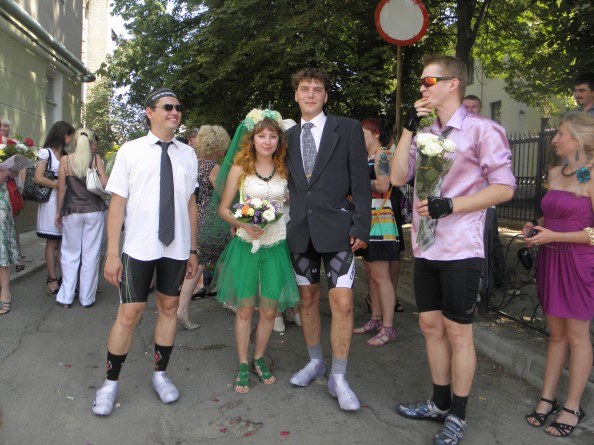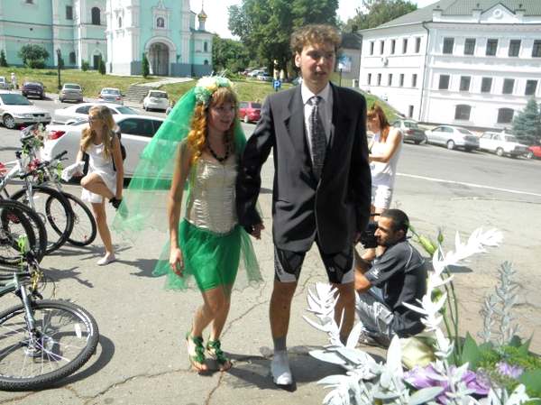 Сумчане Саша Крищенко и Елена Кравченко сыграли первую в своем городе велосвадьбу. Как пишет сумская газета «Панорама», кортеж из 40 велосипедов стартовал сегодня в 10:50 от СумГУ, проехал через ул. Харьковскую и финишировал возле ЗАГСа в 11:15. Брачующиеся ехали на велосипедах с табличками «жених» и «невеста», до места церемонии молодожёнов провожали знакомые и друзья по велопрогулкам. Они были торжественно одеты в рубашки, галстуки и велосипедные шорты.