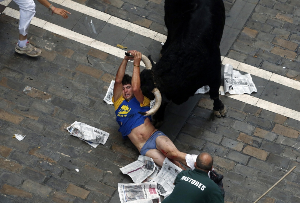 В традиционном забеге с быками серьезно пострадали три испанца (ФОТО)