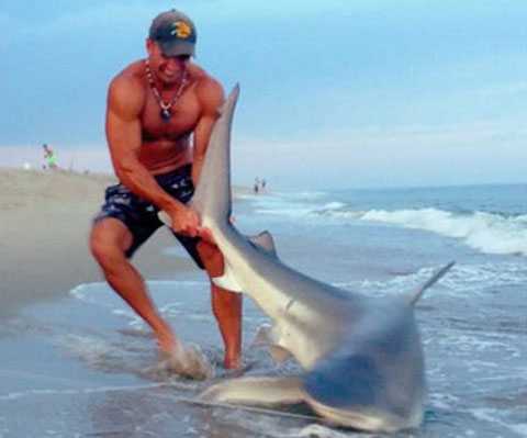 Американец устроил бой с 2-метровой акулой прямо на пляже