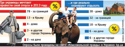 Итог печален. У нас в активе не только Черноморское и Азовское побережья, но и потрясающие Карпаты. А еще - заповедники, национальные парки, уникальные памятники культуры и природы. Но три четверти украинцев мечтают о загранице. А те из наших сограждан, кто не может себе позволить зарубежный вояж, отдыхают не на отечественных курортах, а просто остаются в четырех стенах собственной квартиры.