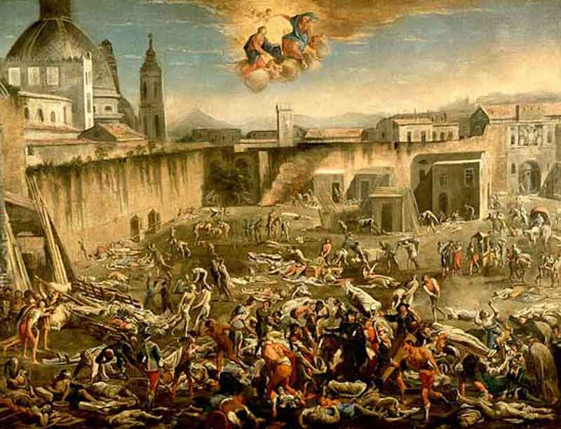 Однако новые церкви становились всё новыми источниками заразы — так как до XV века умерших от эпидемий хоронили на церковных кладбищах, как и всех остальных усопших, то есть в черте города. Если учитывать, что церкви в ту пору горожане посещали регулярно, неудивительно, что противоэпидемические меры не имели никакого действия. Первые опыты по прививанию проводились во многом интуитивно, и лишь с возникновением теории миазмов начались поиски тех субстанций, которые и служат возбудителем заболевания (сейчас нам известно, что это микроорганизмы), а также механизмов их передачи.