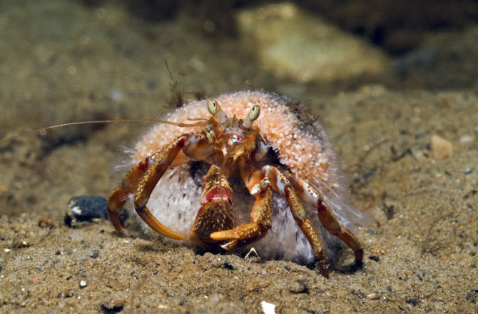 Мохнатая улитка — это розовая масса шипов, щупалец и полипов от 20 до 30 миллиметров в длину, что делает ее достаточно маленькой, чтобы она могла прикрепляться к панцирям раков-отшельников на ирландском и британском побережьях. Мохнатая улитка выглядит обыкновенной, за исключением одного: по словам Ури Фрэнка, ученого из института, создание «в теории живет вечно». На изображении выше мохнатая улитка «сидит» на спине у обычного краба.