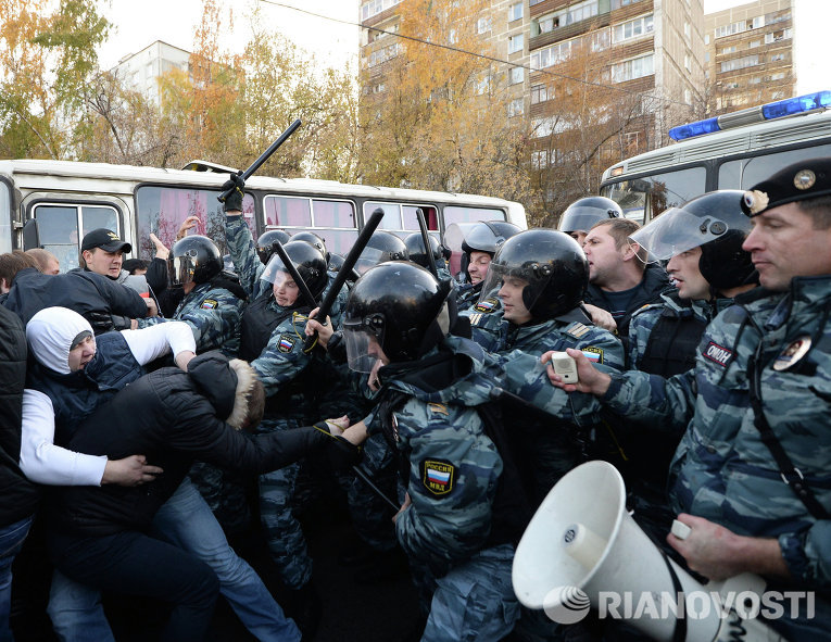Участники акции, переросшей в беспорядки, в Бирюлево оказали сопротивление сотрудникам полиции. После того как правоохранители задержали несколько участников акции, их соратники попытались отбить задержанных у ОМОН.