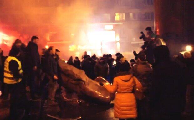 Напомним, как сообщал "Главред", вечером 8 декабря несколько десятков молодых людей в масках на лицах повалили памятник Ленину на Бессарабской площади в центре Киева.