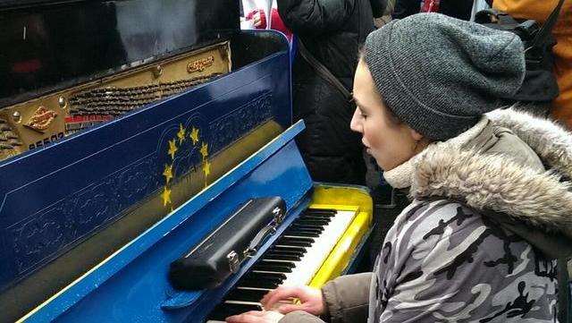 На пианино, которое стоит возле здания Киеврады, может сыграть любой желающий.