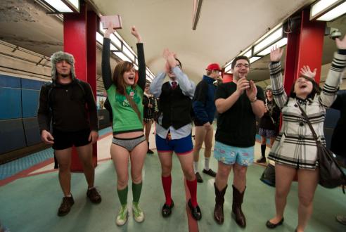 В это воскресенье, 12 января, в киевском метро можно будет увидеть пассажиров без штанов. Это участники ежегодной акции No Pants Subway Ride – «Проезд в метро без штанов», которая была основана в 2002 году в Нью-Йорке группой друзей как розыгрыш.