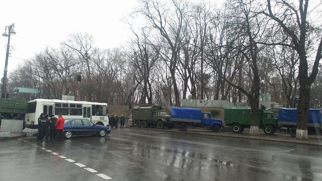 Возле Верховной Рады стоят около 20 милицейских автобусов. Количество сотрудников милиции у здания правительства осталось прежним. Во дворе Кабмина стоят семь милицейских автобусов. Здесь же дежурит машина скорой помощи.