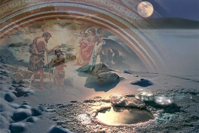По старинному обычаю, в день Крещения Господня верующие совершают омовение в иорданях – прорубях, вырубленных во льду в форме креста.